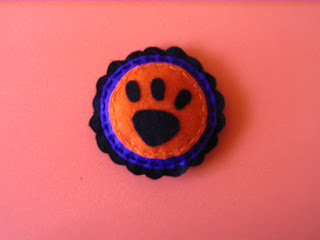 Unos broches circulares con la silueta de una huella en su centro. En un principio la huella era la de "La pantera rosa" pero, según mi marido, ¿Como sabes que esa es la huella de la pantera rosa? Como he de reconocer que el es un fan de ese bicho he decidido hacerle caso y decir simplemente que es una huella.
