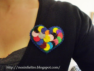Y aquí estoy yo luciendo mi broche "Corazón con círculos".