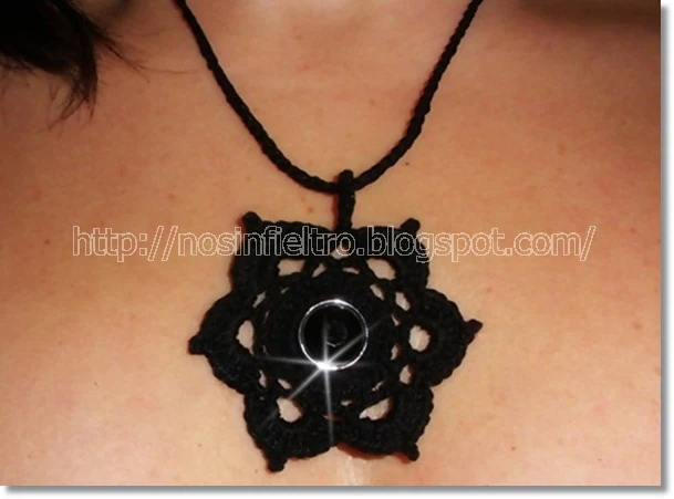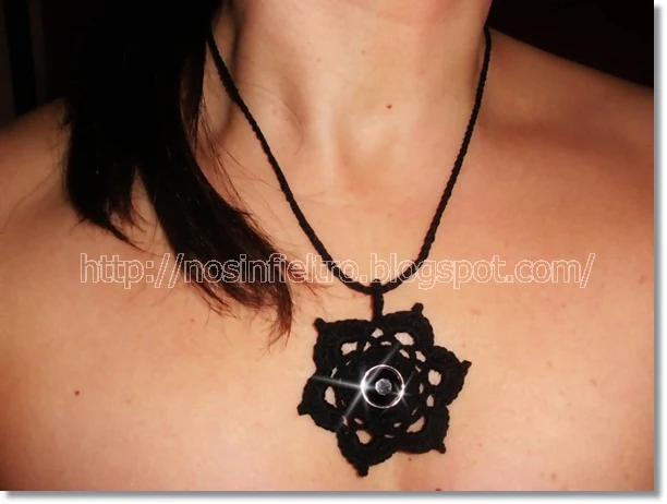 Quiero enseñaros, al "hilo" de ese pensamiento, un sencillo collar de crochet. Me gusta precisamente por su sencillez, acentuada por el color negro. Con el tiempo quizás me decante por otros colores pero, de momento, me quedo con este. Es un poco diferente al primero que hice. Algo más grande y con un hilo algo más grueso.