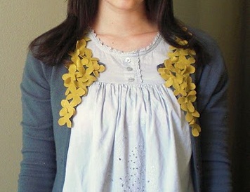 Este primero es bastante simple. Cortar algunos corazones de fieltro y coserlos en el cuello de una chaqueta de punto.