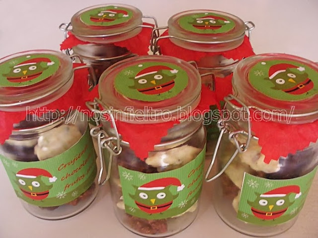Esta Navidad he tenido tiempo de hacer estos botes de dulces para regalar. Los he llamado "Crujientes de chocolate y frutos secos" y, además de resultar deliciosos, son bastante fáciles de hacer. La receta es de una de mis hermanas que siempre está haciendo deliciosos experimentos en la cocina.