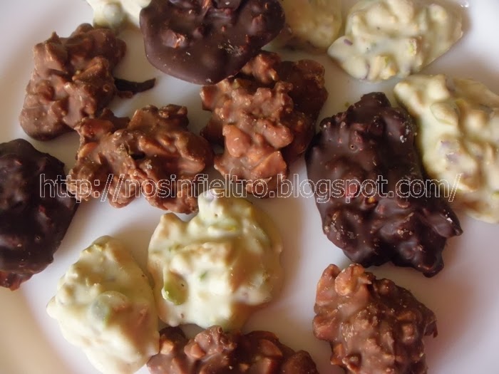 Para los crujientes solo necesitáis chocolate, del que más os guste, y frutos secos.